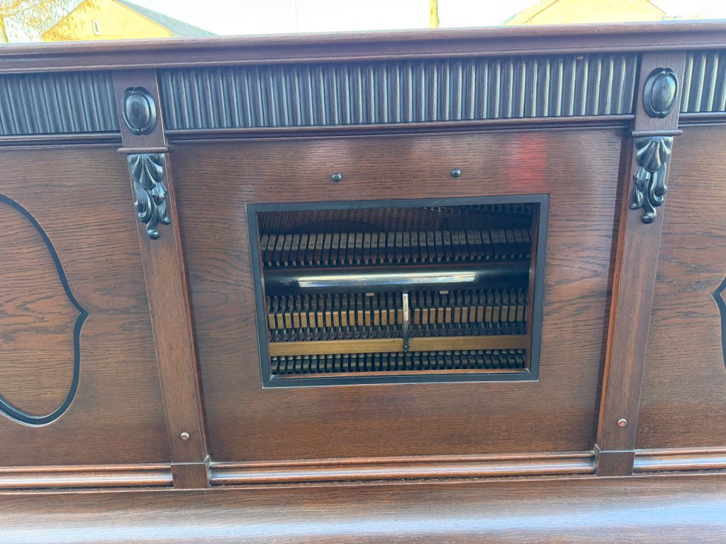 Deze prachtige piano uit 1907 is een uniek stuk geschiedenis. Het instrument is in gebruikte staat, maar verkeert nog in redelijk goede conditie gezien zijn leeftijd. De piano heeft een warme, volle klank en is perfect voor liefhebbers van klassieke muziek of verzamelaars van antieke instrumenten. Het is een echte blikvanger in elke kamer. De piano is bruin van kleur. Een stembeurt is aan te raden.